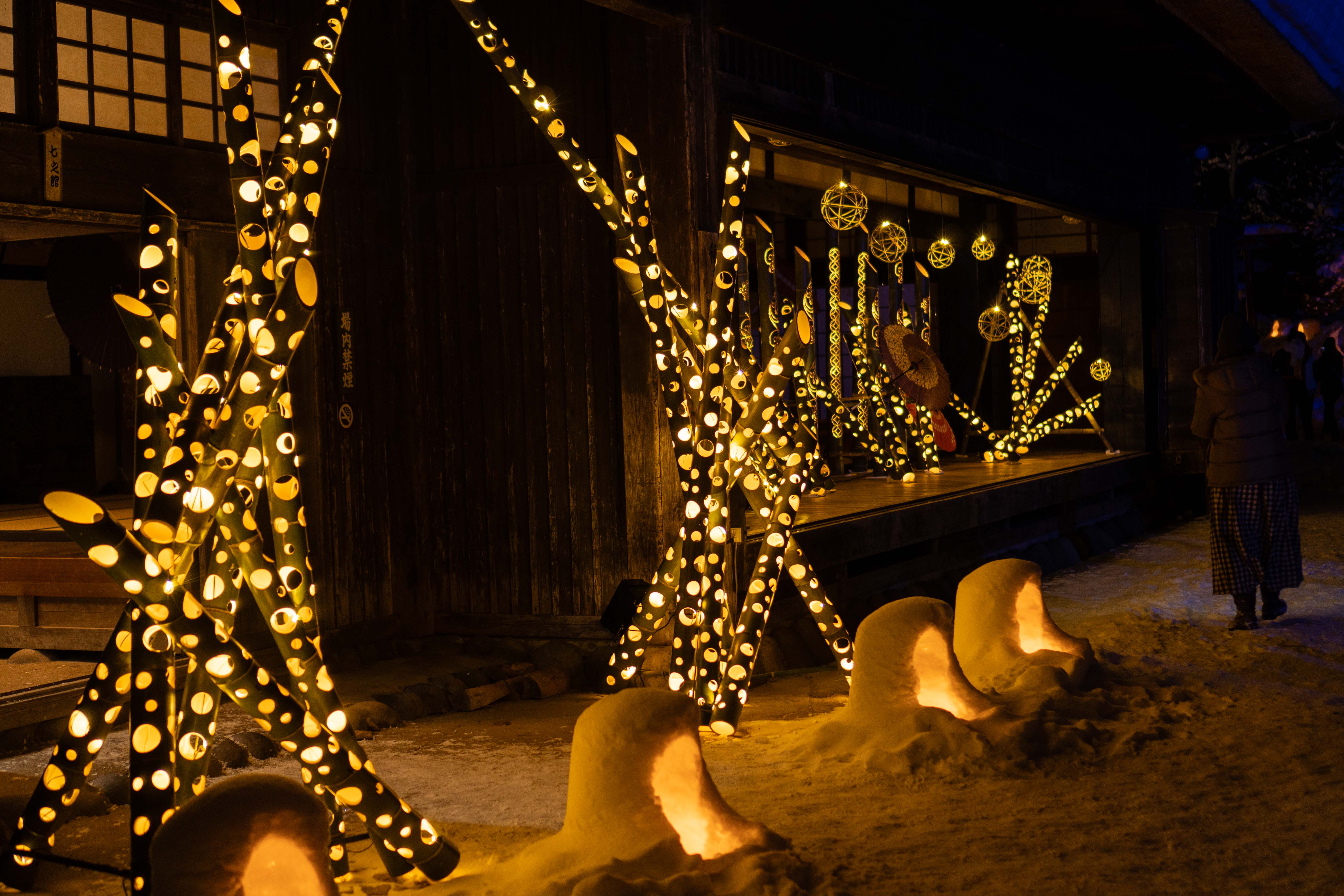 竹灯りとかまくらのきらびやかな世界