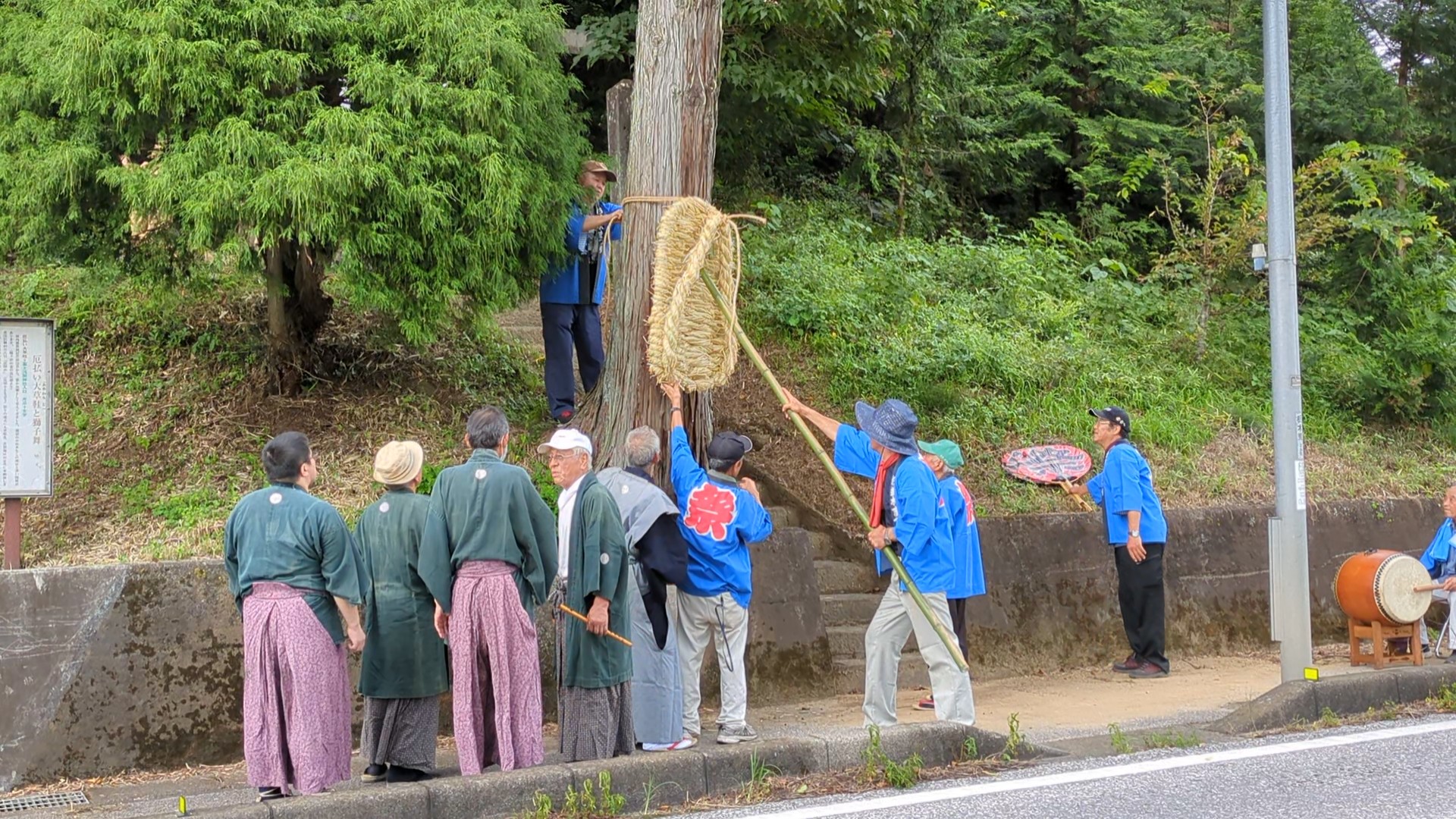14:30頃 芹沼交差点にて奉納(わらじ設置・獅子舞奉納)