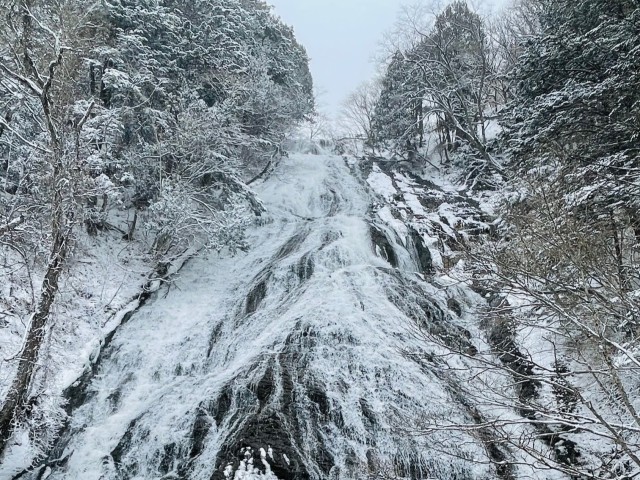 中禅寺湖の水が一気に流れ落ちる様子は圧巻。落下する高さは97mにも及び、爆音とともに水しぶきが弾ける様は見るものを魅了します。春から夏にかけては新緑、秋は紅葉、冬は氷や雪と、春夏秋冬いつ見ても美しい姿を見ることができるのも魅力。