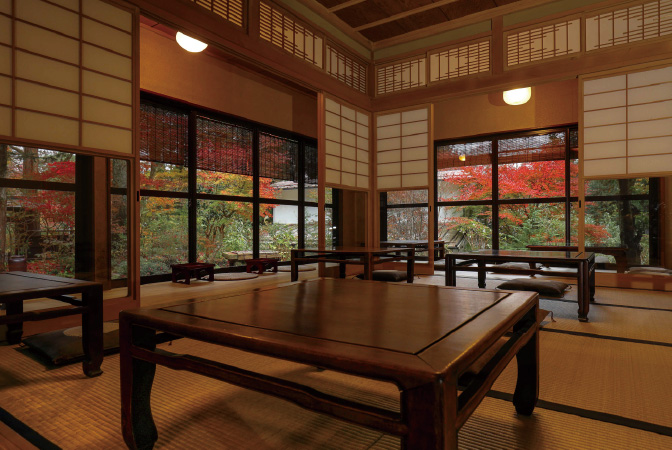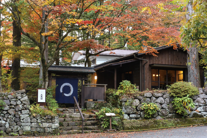 旧田母沢御用邸へと続く御用邸通りに佇む「高井家」は、創業文化2年(1805年)、江戸時代後期からの歴史を持つ由緒ある日本料理店。200年の時を経た重厚な日本家屋の一室で、心づくしのおもてなしを受けながら頂くお料理の素晴らしさは格別です。こと、ランチタイムに提供される湯波懐石では、紅葉に彩られた日本庭園を眺めながら、日光湯波や旬の食材の魅力を存分に味わうことができます。職人の技が光る料理はもちろん、季節のしつらえ、器、盛り付け、配膳のタイミングに至るまで心を尽くしたおもてなしは、極上の秋のひとときを紡いでくれるでしょう。