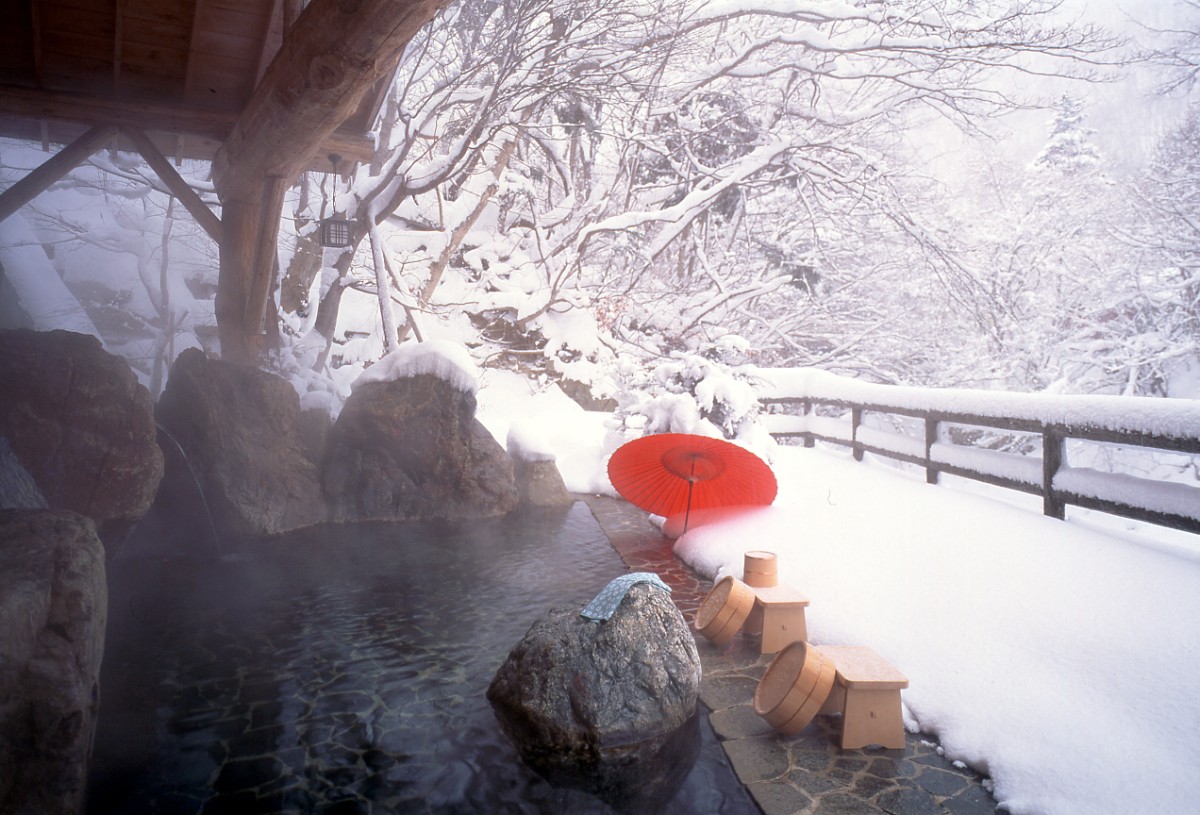 Located on the shores of Lake Chuzenji, guests can enjoy both sulfur and alkaline simple springs depending on the ryokan. The contrast between the deep blue winter lake and the surrounding snow-capped peaks is breathtaking.