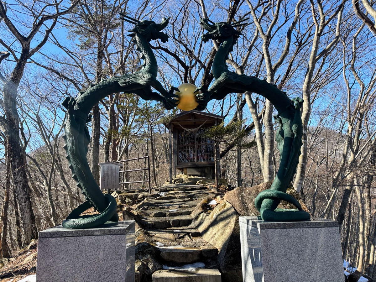 山頂駅に到着すると「おさるの山」があり、さるたちの様子を間近で観察できます。えさやり体験も可能です。山頂には温泉神社があり、自然の中でのんびりとした時間を過ごせます。2匹の龍の像がハートの形に見えるスポットもあり、写真を撮る楽しみも。見晴らしの良い景色とともに、気軽な山歩きと併せて温泉神社への参拝もできます。景色を眺めながらのひとときは、思い出に残る時間に。
