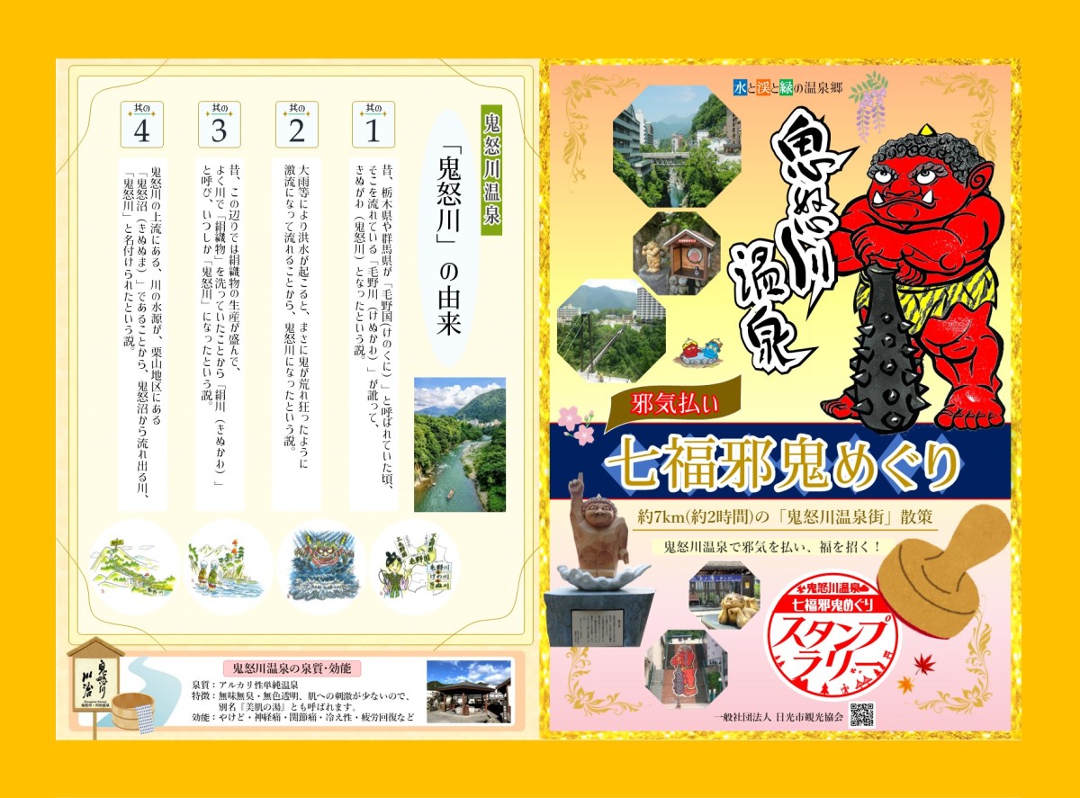 鬼怒川温泉駅前広場の鬼怒太や、鬼怒川温泉街にある各橋のたもとにある、邪気を払い福を招くといわれる「鬼怒太」「鬼怒子」の陶像をめぐり、6つのスタンプを全て集めた方に、、、