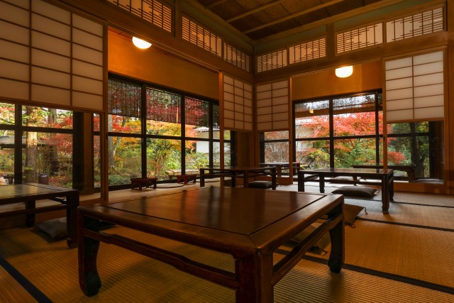 店内は当時の趣を残しており、四季折々の美しい景色を楽しみながらの食事をお楽しみいただけます。