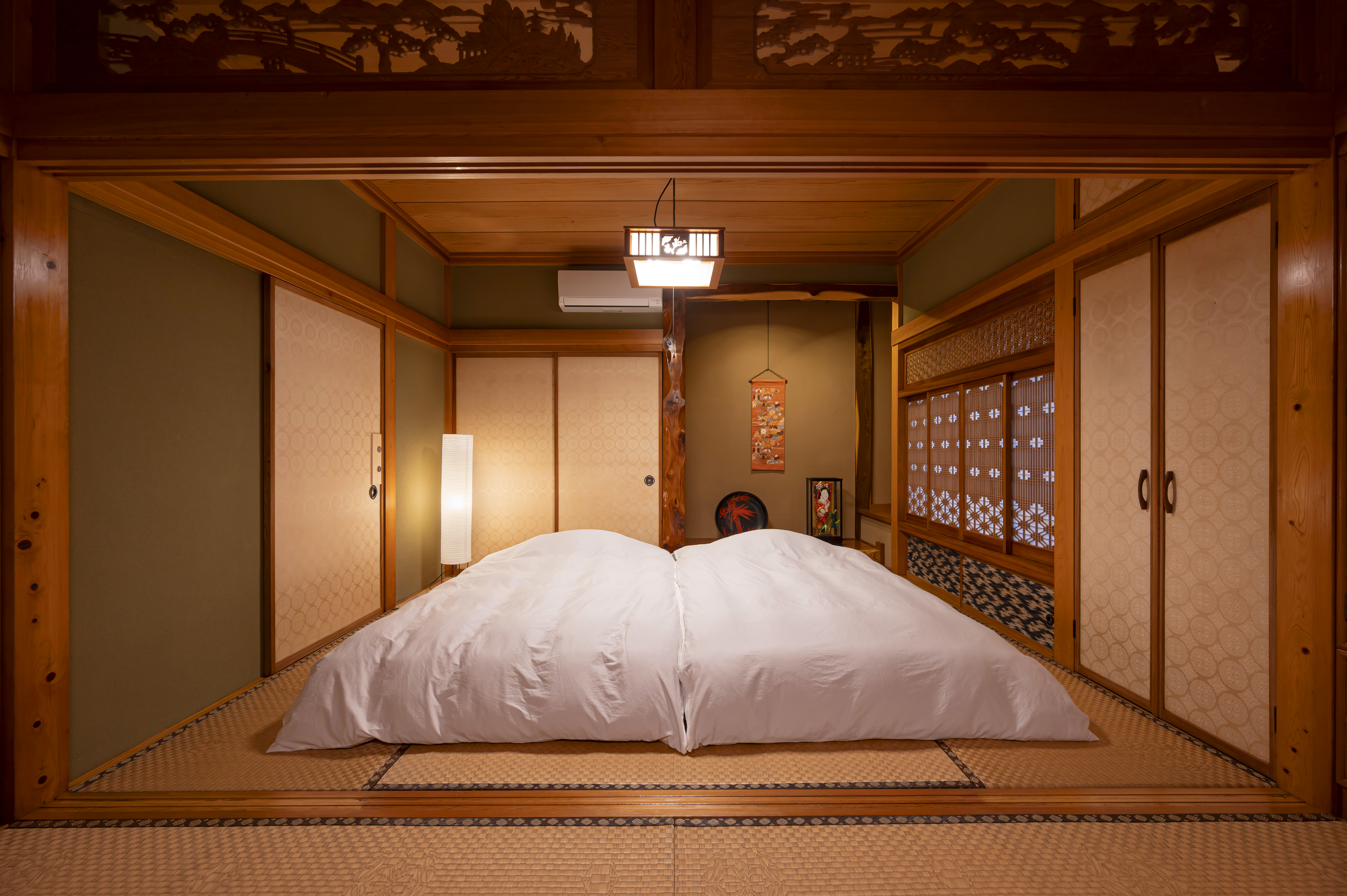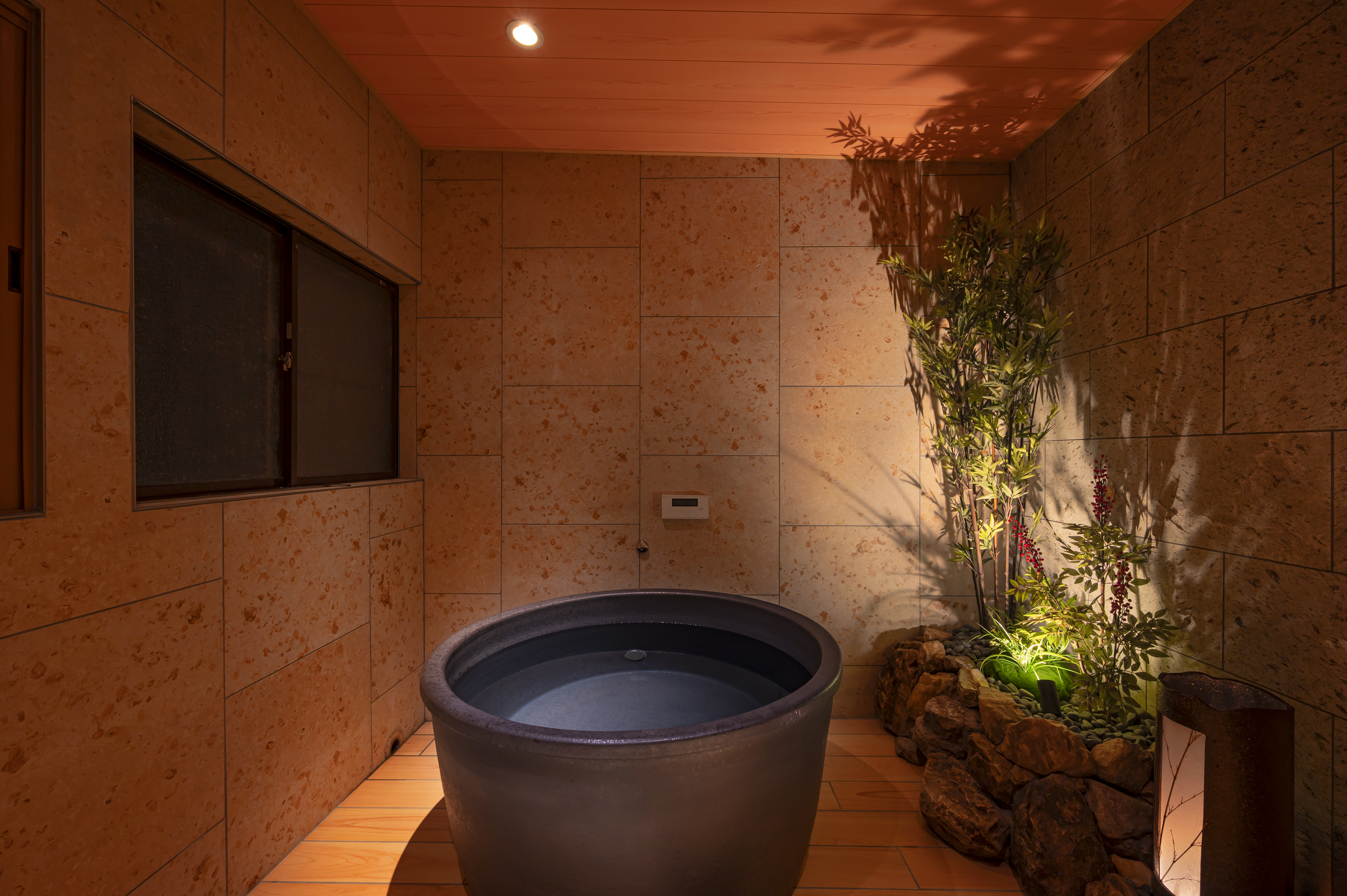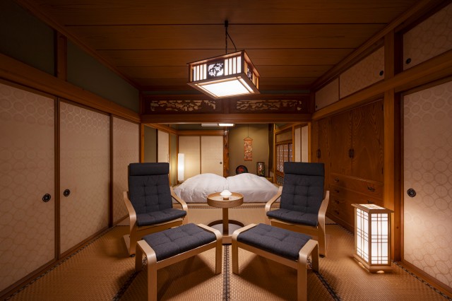 組子や雪見障子、信楽焼の浴槽など、伝統の意匠を随所に取り入れた空間は、どこか懐かしくも洗練された日本の美を感じられる佇まいです。