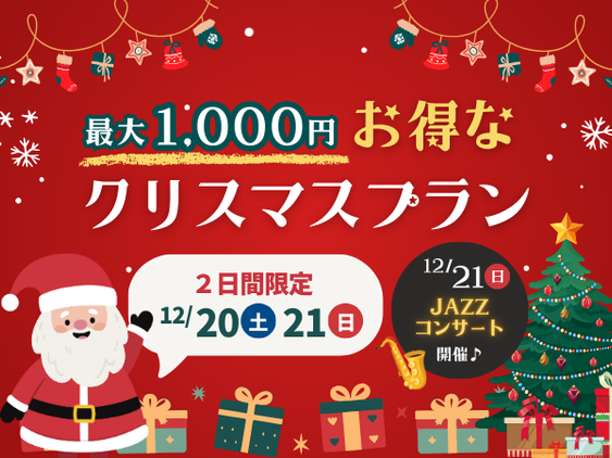 大人3名以上で[最大1,000円]お得な「クリスマスプラン」を販売中!